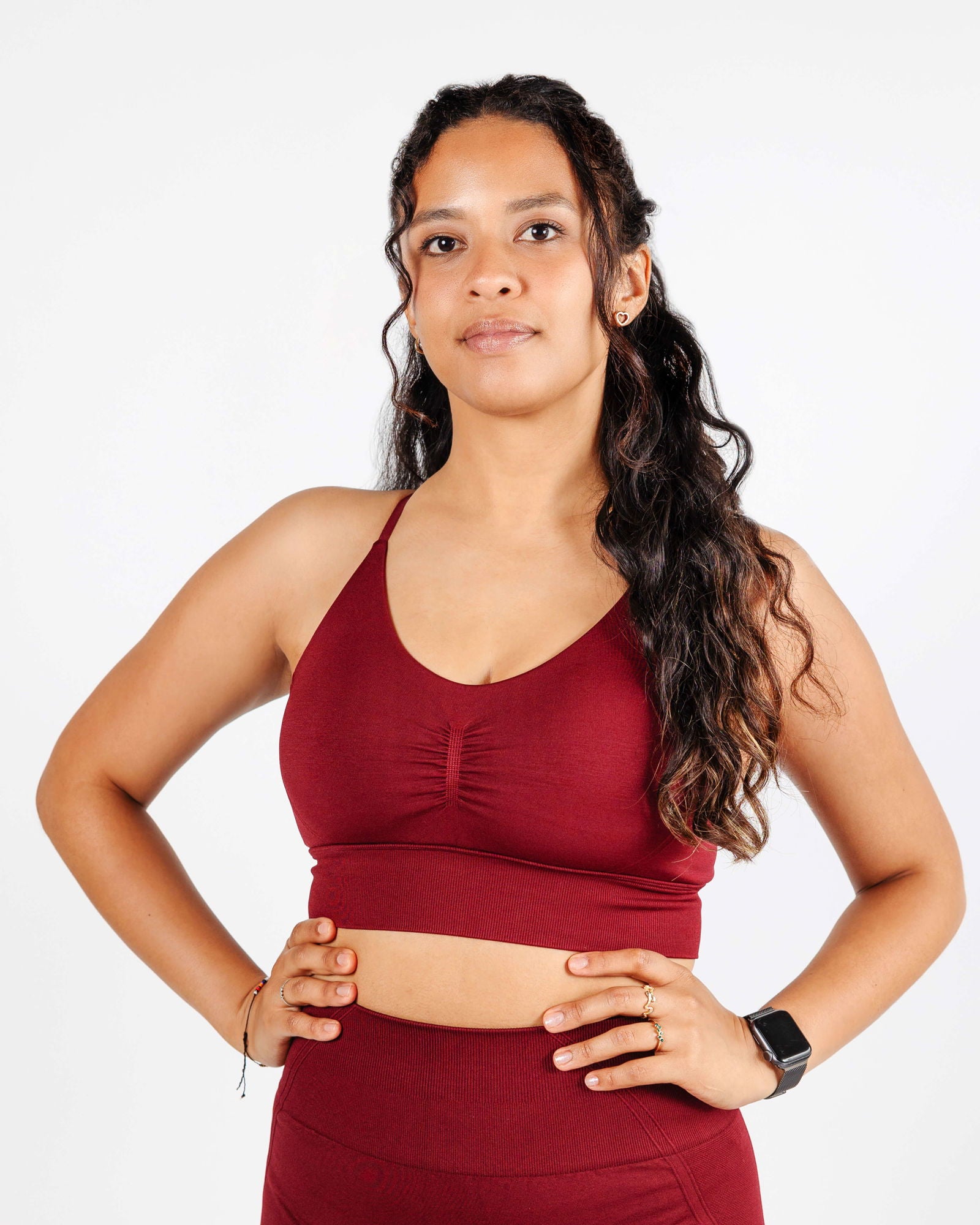 High-support red sports bra with adjustable straps and breathable stretch fabric for maximum comfort, control, and feminine performance.