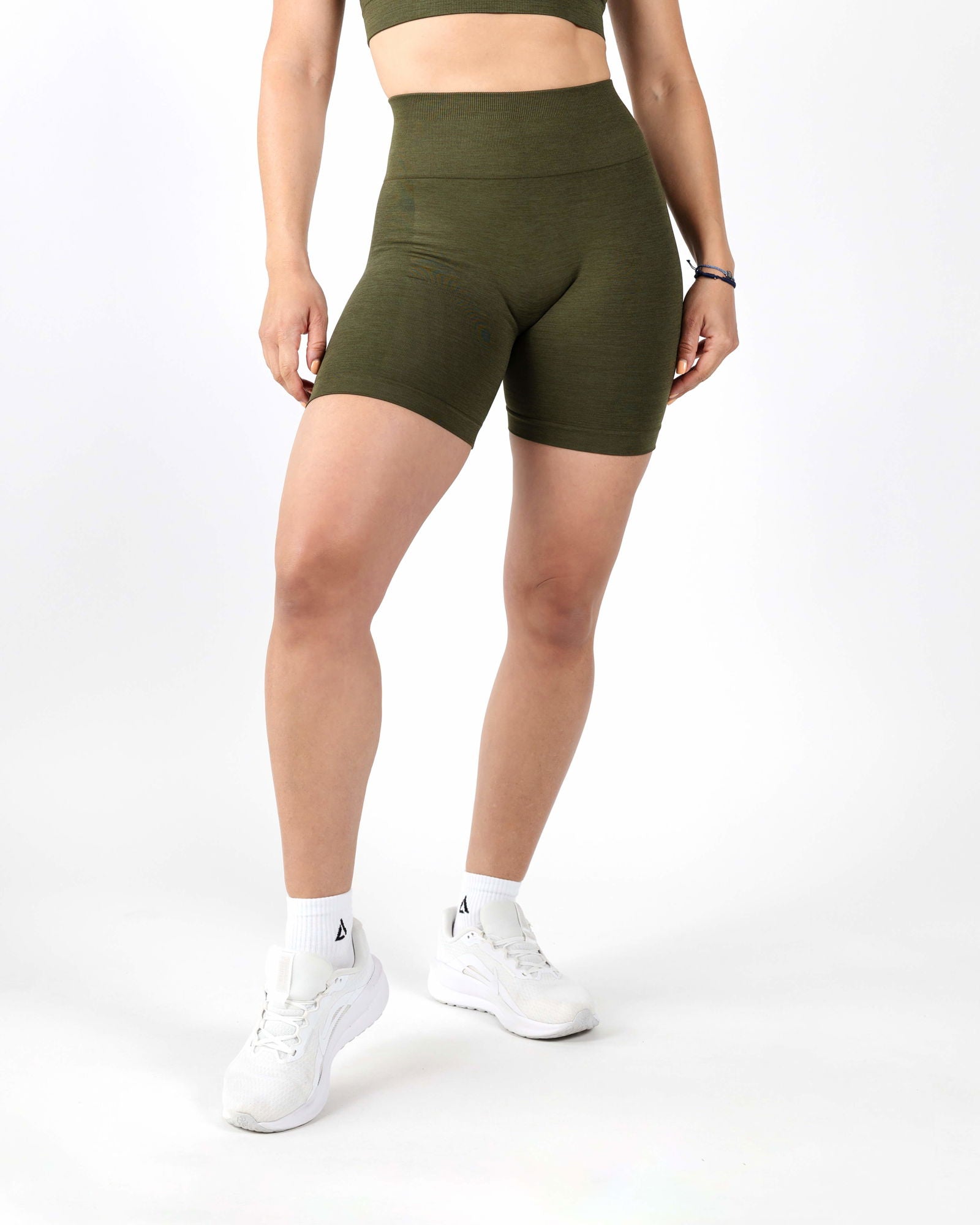 High-waisted army green shorts with scrunch contour, seamless stretch, and sculpting support for ultimate freedom and style.